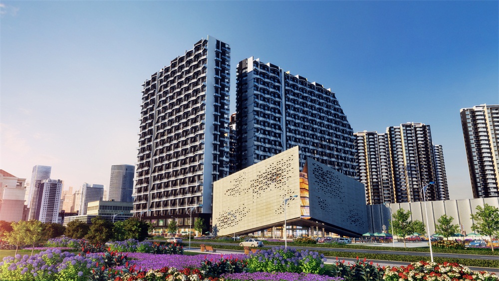 总建筑面积15万平方米,总造价2.8亿;该项目分为住宅、酒店、石材创意展区。